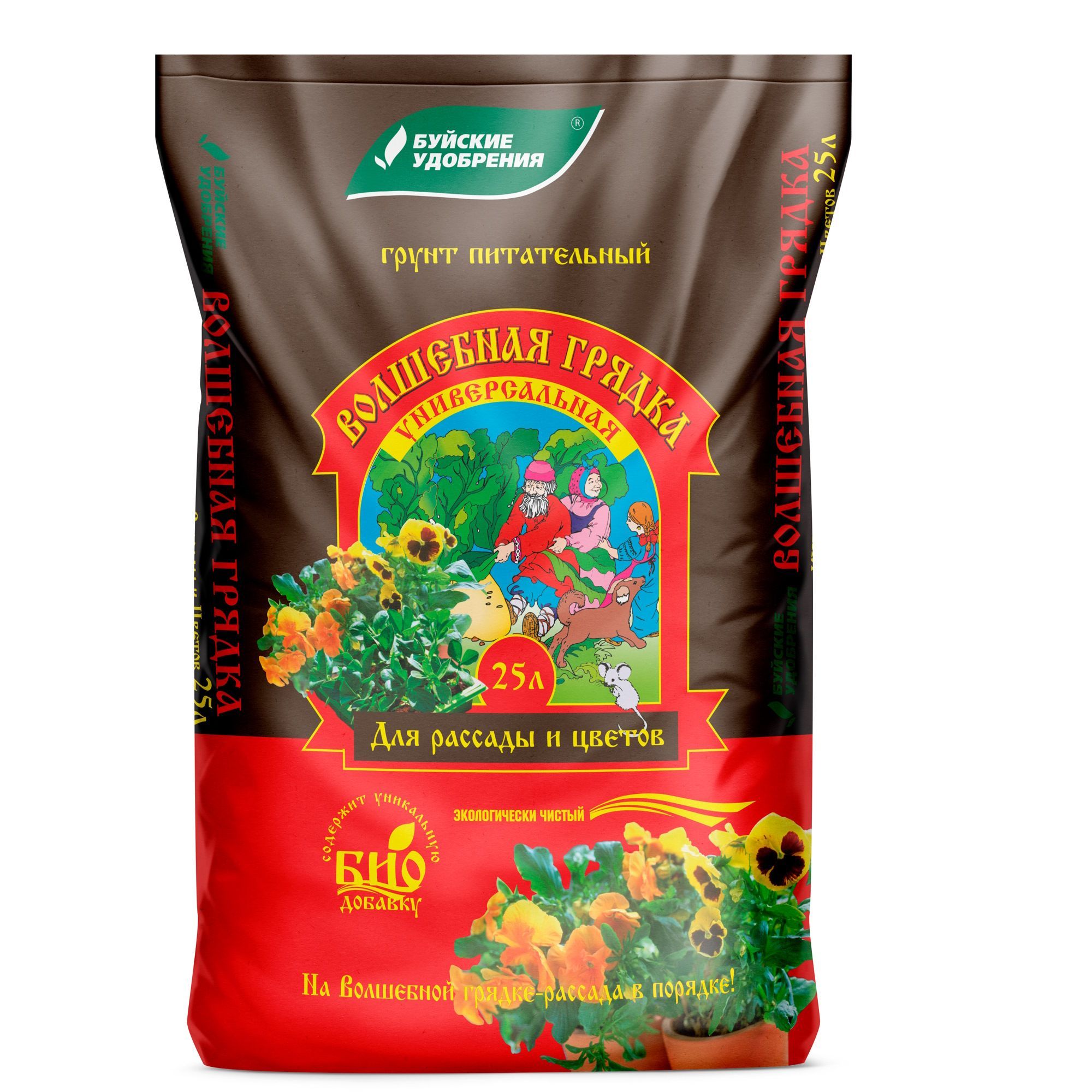 Волшебная грядка Универсальная- натуральный высококачественный грунт универсального назначения. Полностью готовый для применения продукт, не требующий смешивания, предназначен для выращивания рассады овощных и цветочных культур, декоративных горшечных растений и выгонки зеленых культур.