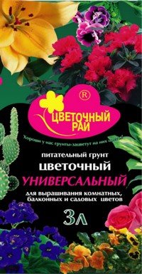 ВОЛШЕБНАЯ ГРЯДКА грунт ЦВЕТОЧНЫЙ РАЙ Цветочный - натуральный высококачественный грунт универсального назначения. Полностью готовый для применения продукт, не требующий смешивания, предназначен для выращиванияцветочных культур, декоративных горшечных растений и выгонки зеленых культур.