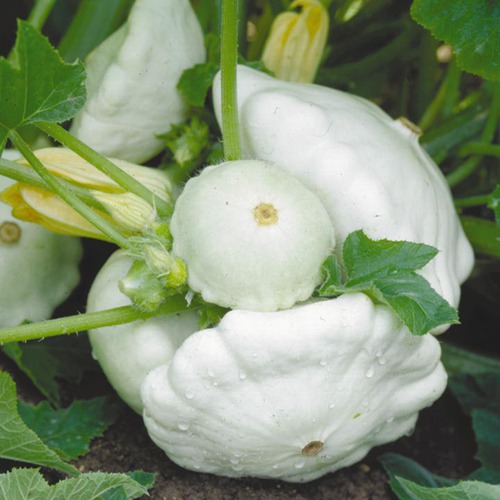 Невероятно урожайный среднеспелый (55-67 дней) кустовой сорт универсального использования. Растения кустовые. Плоды дисковидные, слабо сегментированные, белые, массой 300-500г. Мякоть белая, плотная, хрустящая, сочная, сладковатая. Урожайность до 5кг/кв.м. Ценность сорта: холодостойкость, быстрое созревание плодов, отличные вкусовые качества. В кулинарии используют молодые завязи, когда мякоть нежная и семена не развиты. Свежие патиссоны идеальны при фаршировке и в других блюдах.