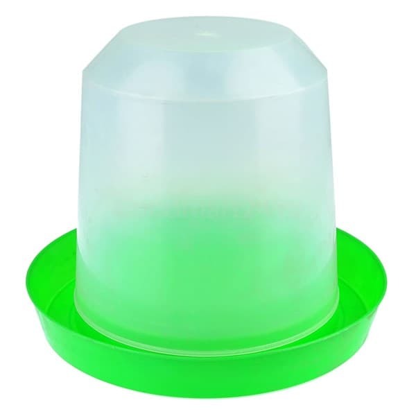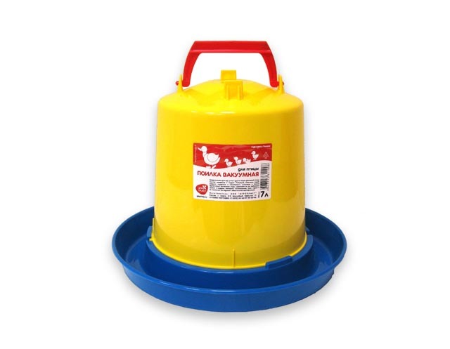 Поилка изготовлена из пластика, состоит из бачка-конуса и крышки-дна. Вода заливается в бачек,плотно закрывается крышкой и перевернув ставится на нее. Подходит для цыплят и взрослой птицы.
